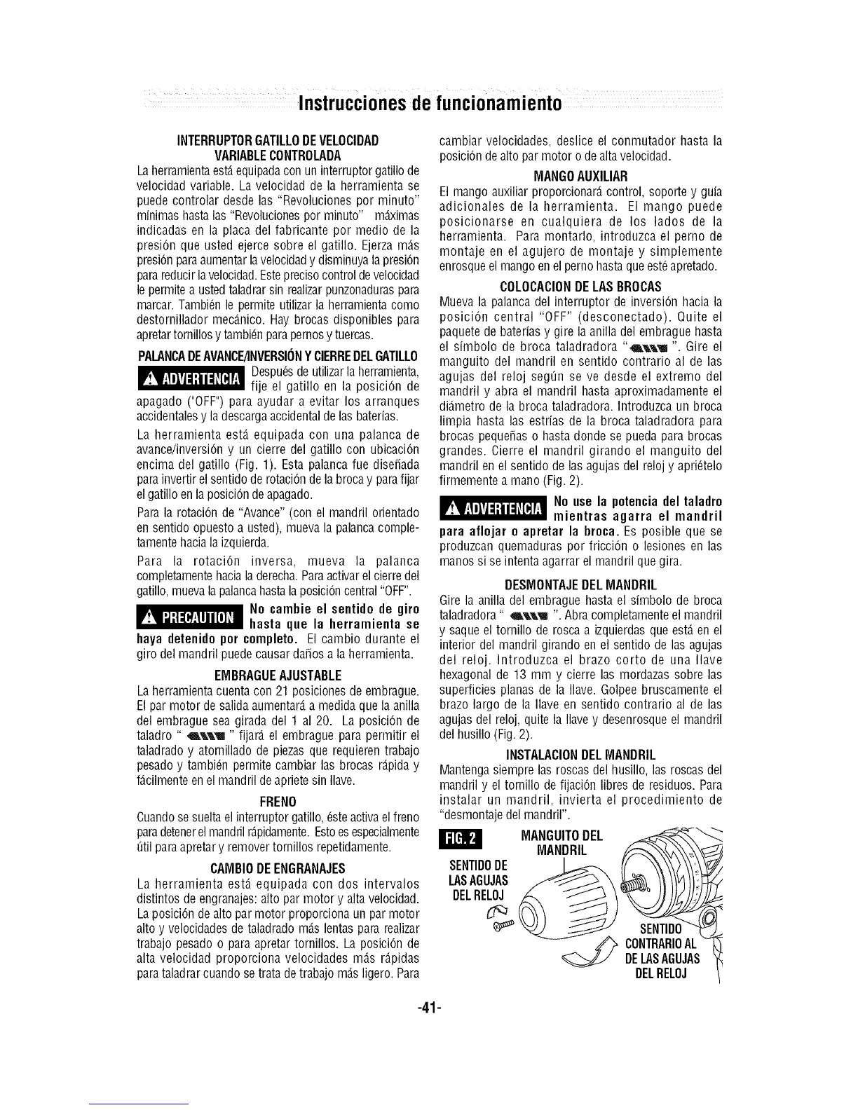 taladro " _ll'l " fijar_ el embrague para permitir el