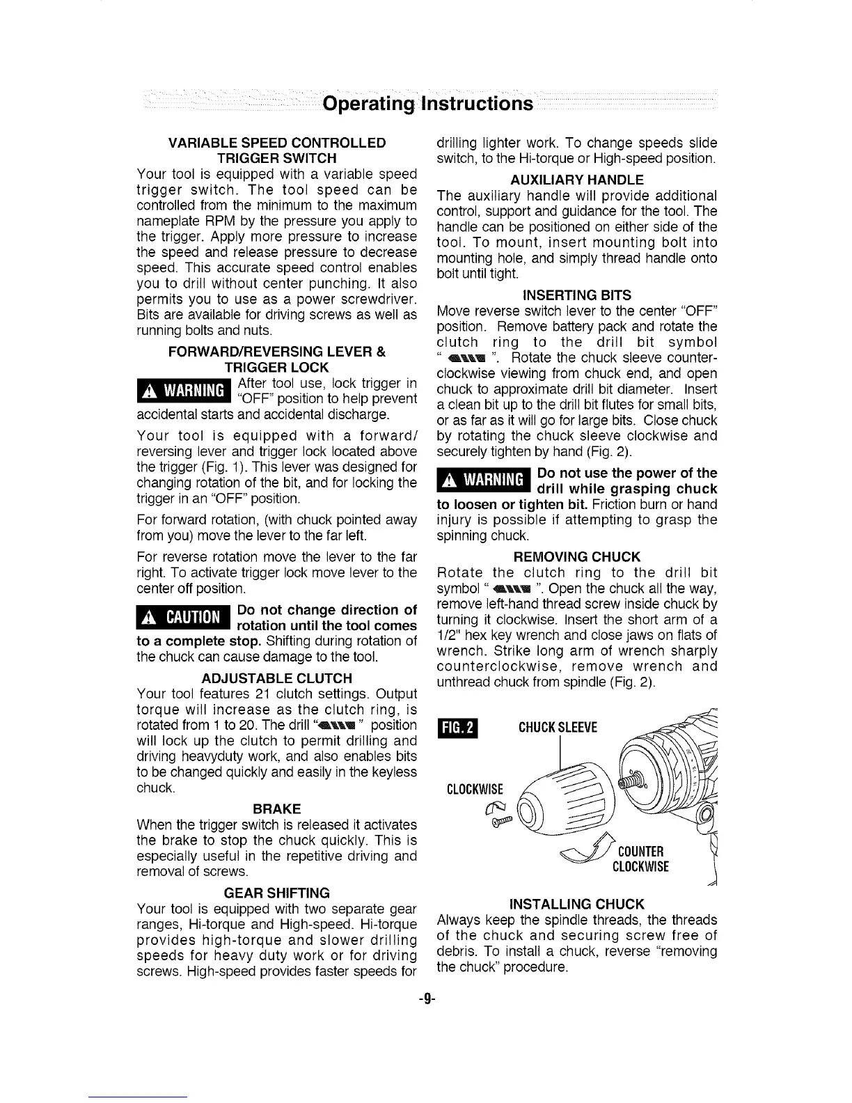 debris. To install a chuck, reverse "removing