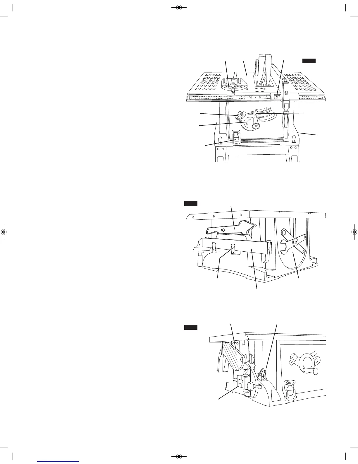Elevates or lowers the blade. Also used to adjust blade bevel at