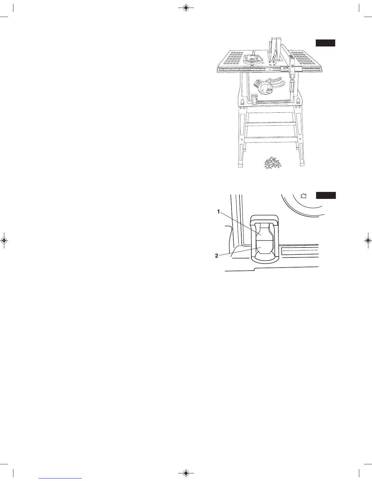 1. To turn the saw ON, insert the safety key 1 into the switch 2