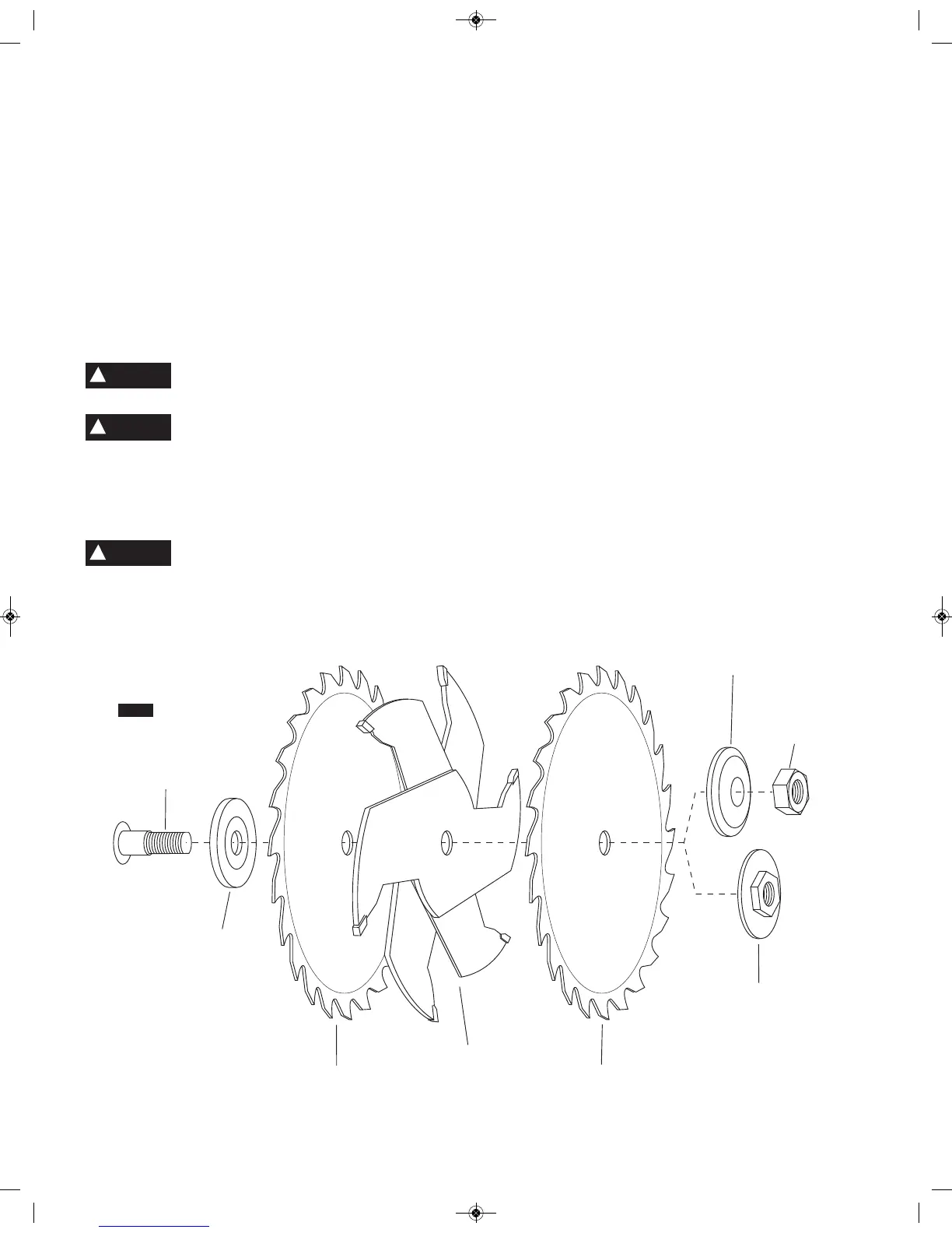 • For wider cuts (up to 1/2” maximum), chipper blades and