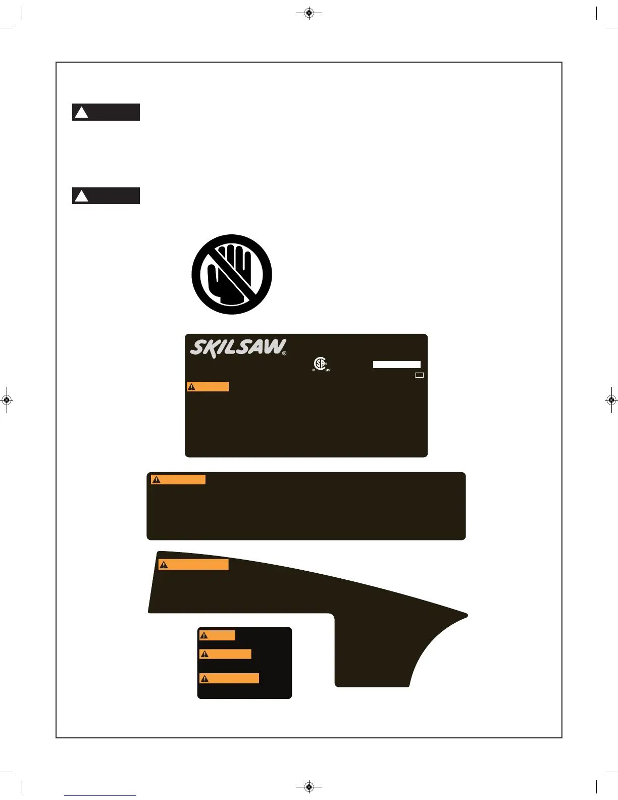 zone. ▲ Disconnect saw from power source before servicing or changing blade. ▲ Never reach around or in the