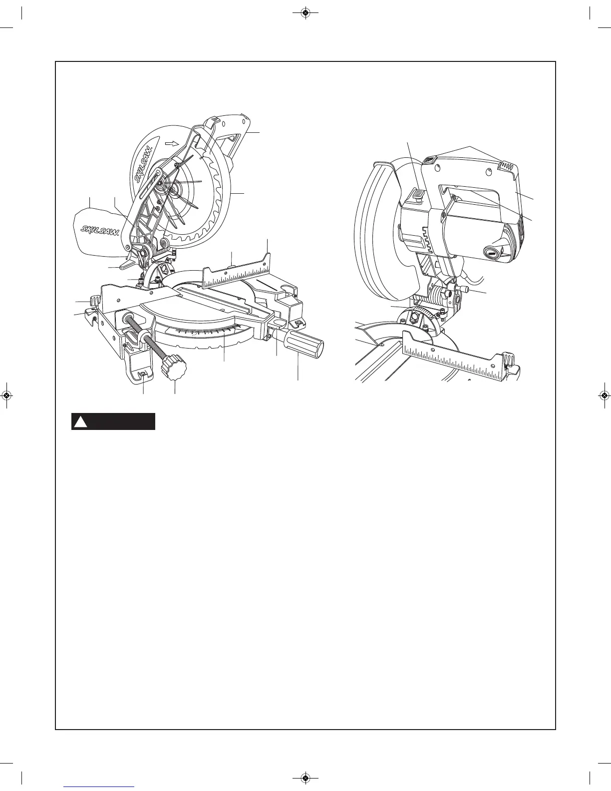 10. Tornillos del tope de bisel — Se utilizan para ajustar la hoja