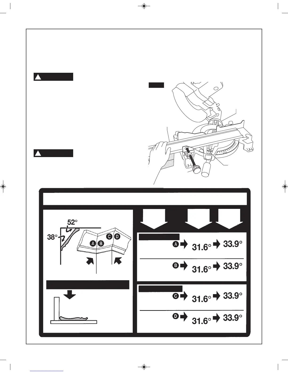 1. Ajuste los ángulos de bisel y de inglete usando el Cuadro 1 que