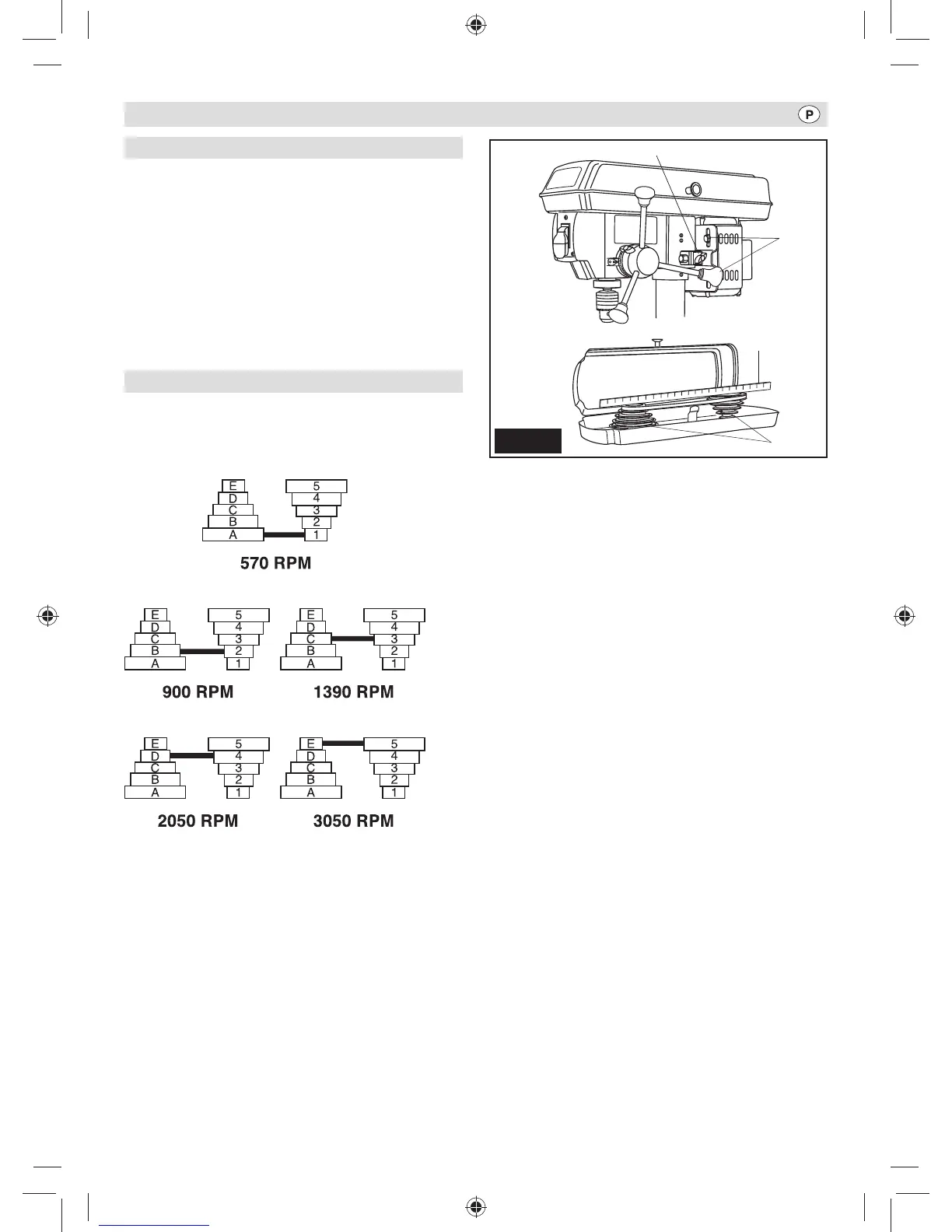 Esta furadeira de coluna oferece 5 velocidades de fuso, desde 570
