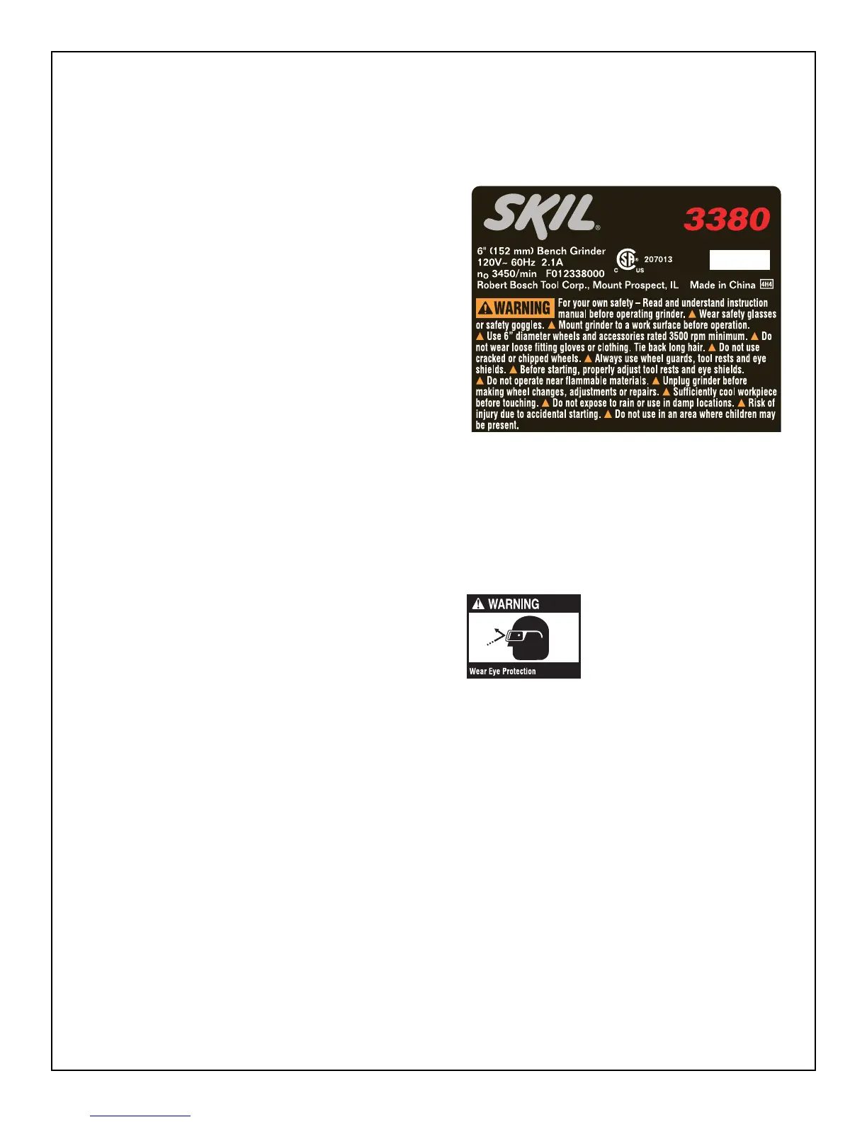 use on this grinder. Never use a wheel rated lower