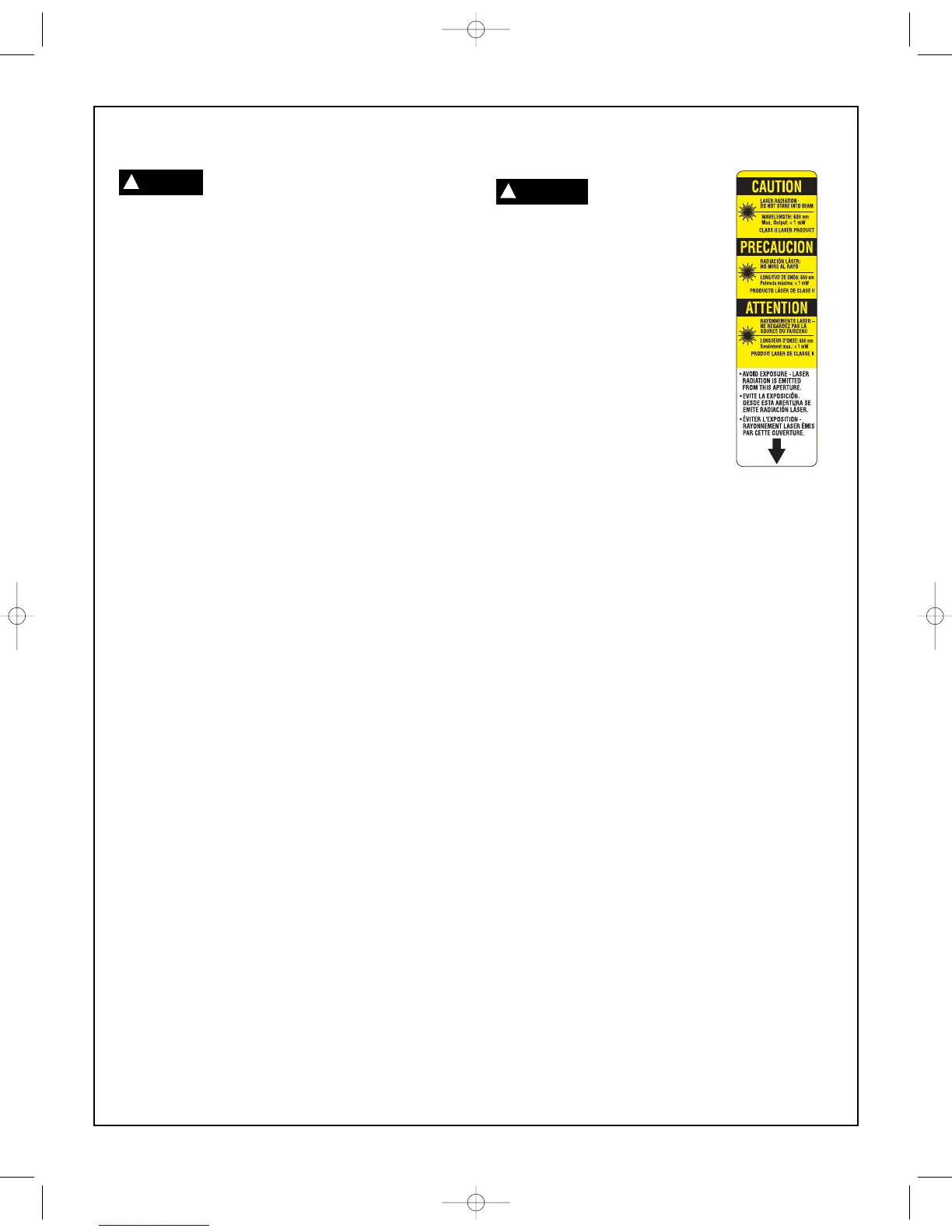 • Never aim the beam at any person or an object other