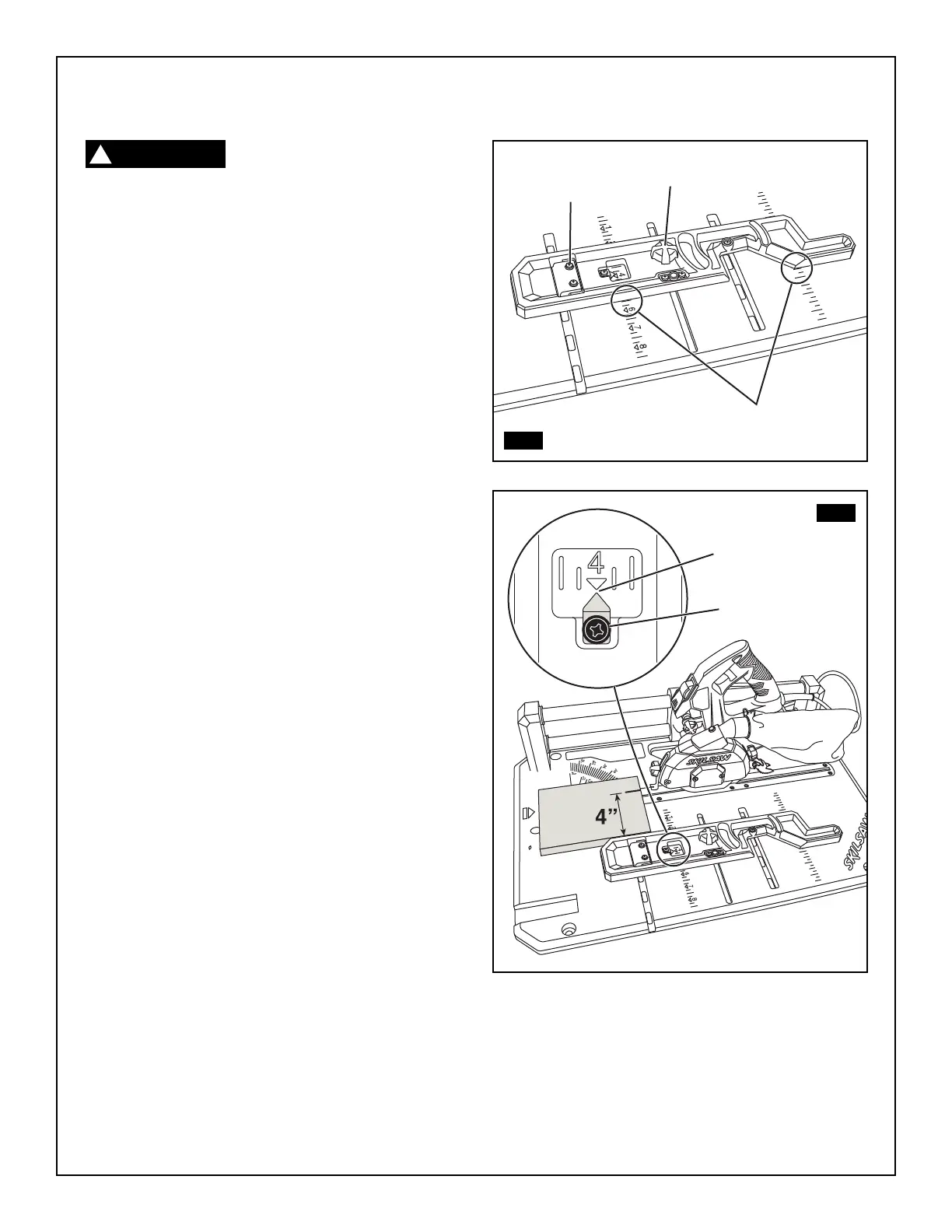 3. Ajuste el tope-guía hasta que esté alineado con las dos marcas