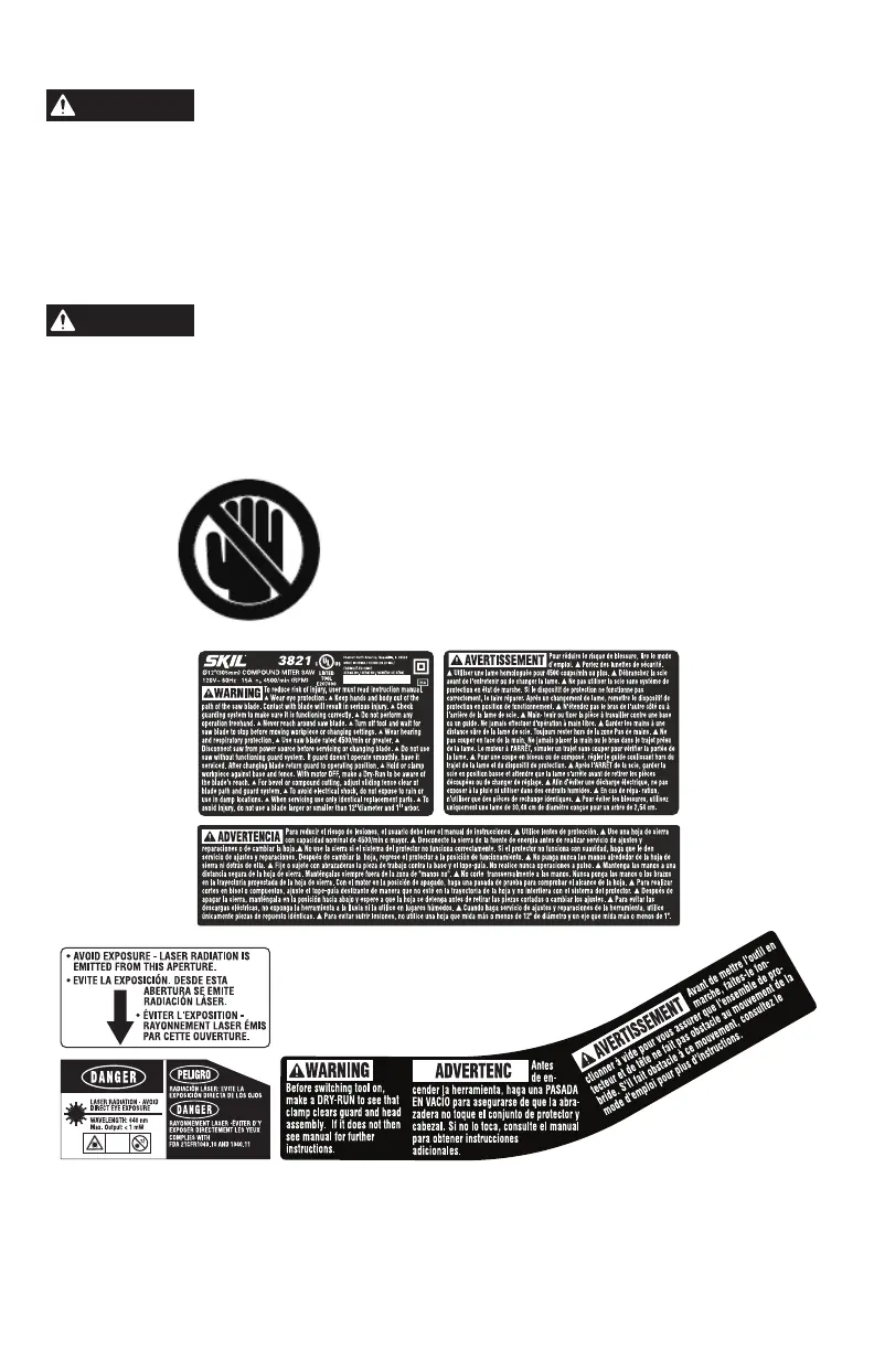 Do not allow familiarity gained from frequent use of your miter saw to become