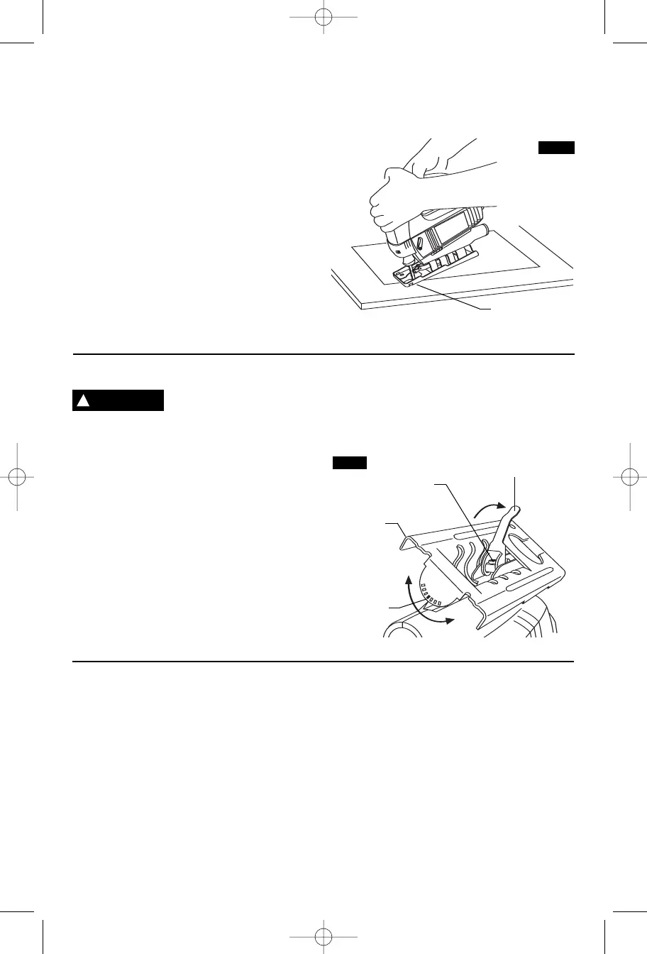 sobre la pieza de trabajo, pero con la hoja bien alejada de