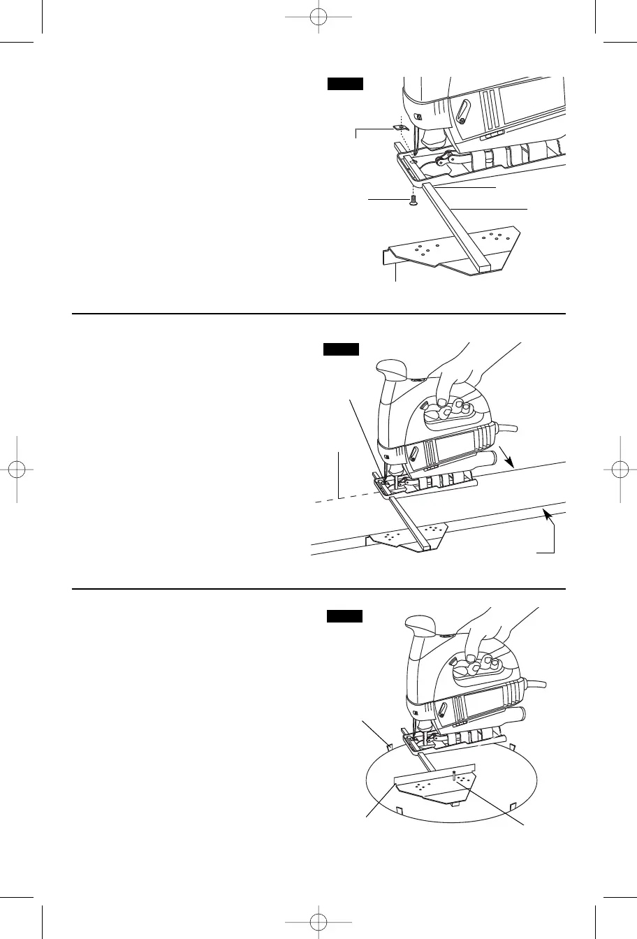 3. Coloque el tope-guía para cortar al hilo en la sierra