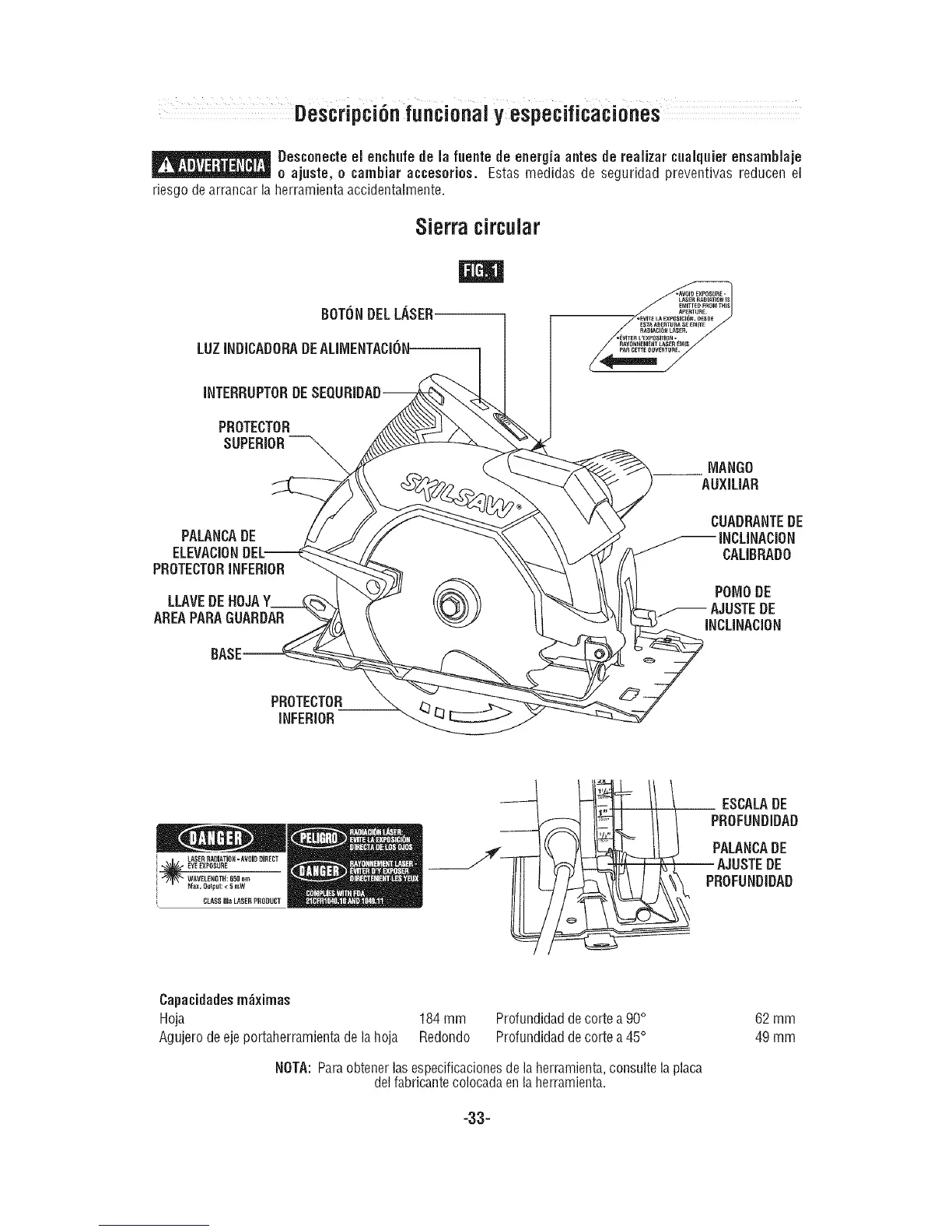 Hoja 184 mm Profundidadde corte a90°