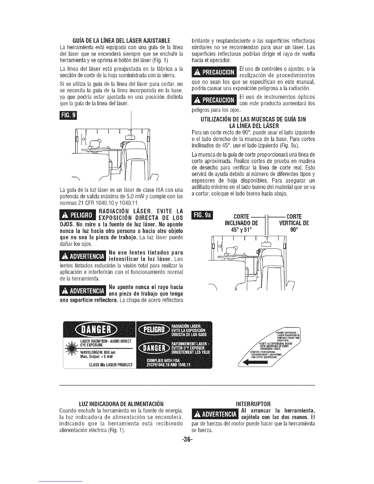 OJOS. No mire a la fnente de Inz I_iser.No apnnte
