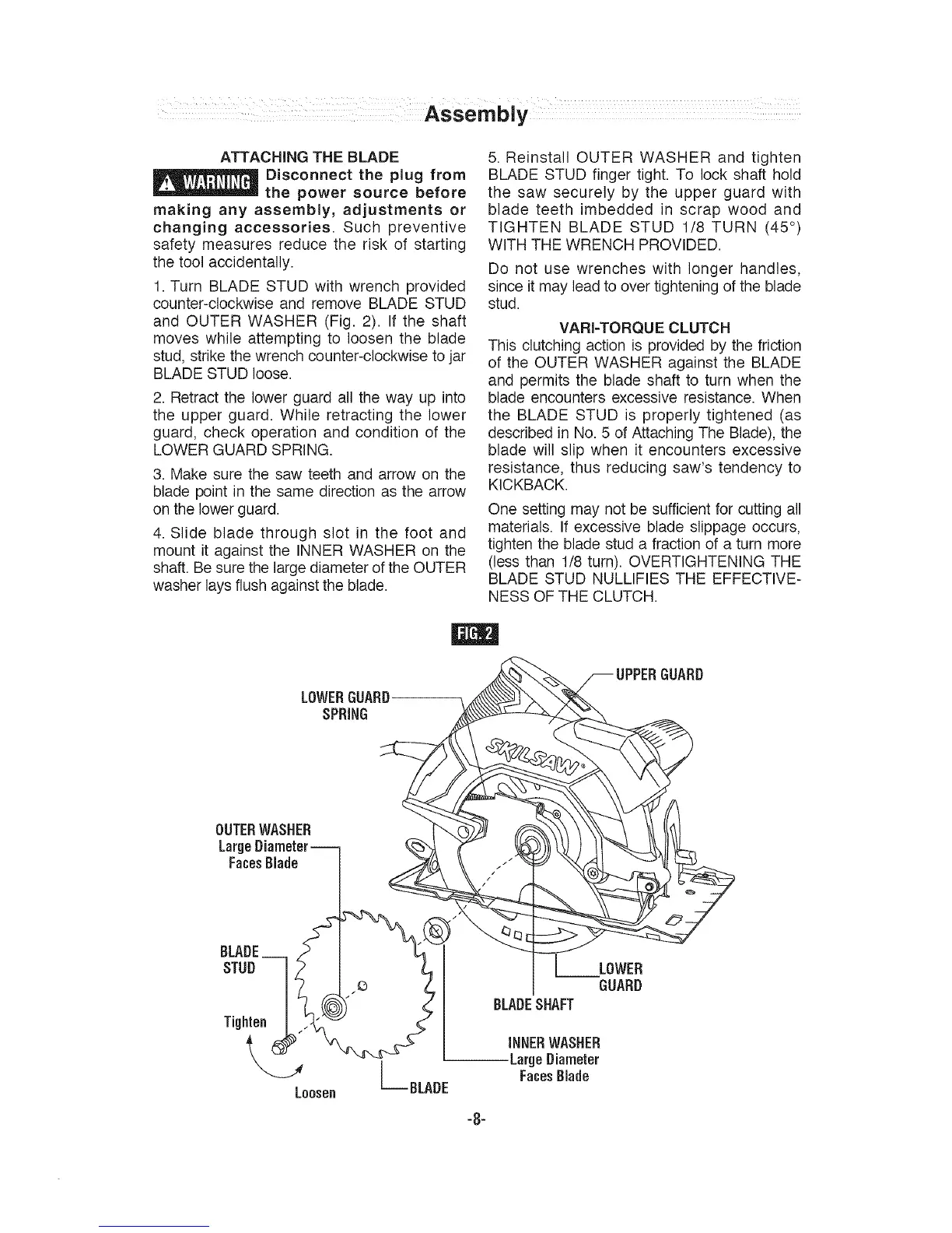TIGHTEN BLADE STUD 1/8 TURN (45 °)