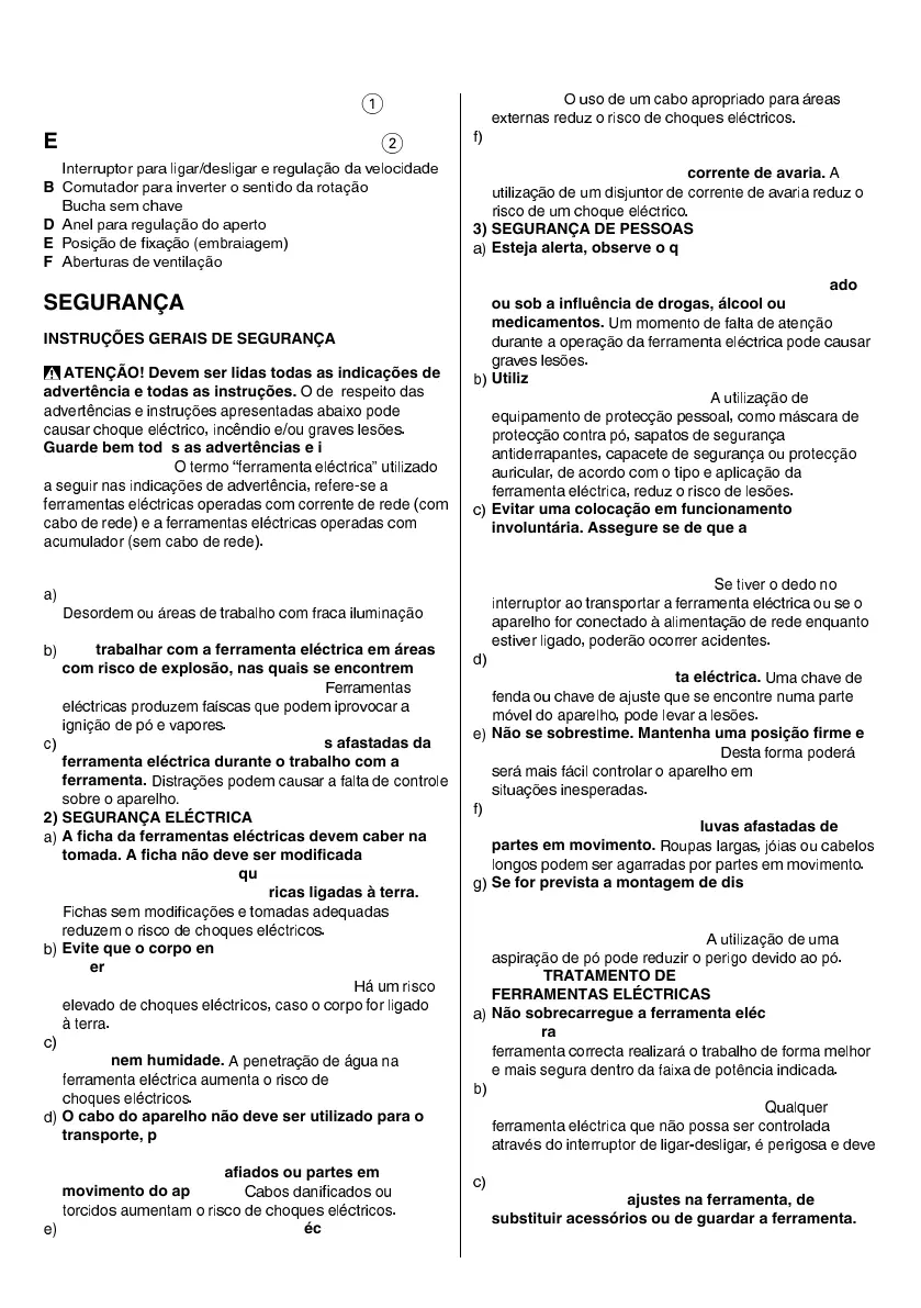 prudencia ao trabalhar com a a ferramenta eléctrica.