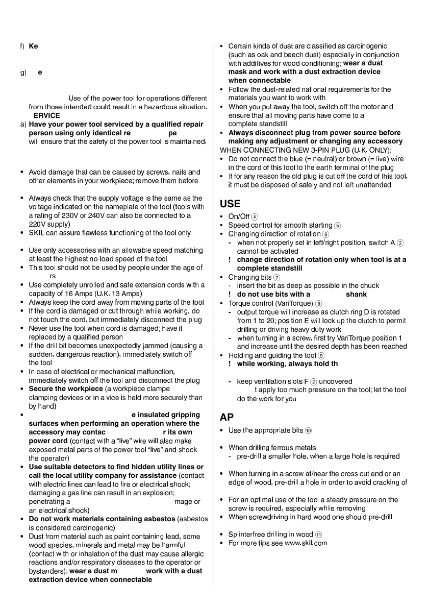 Skil 6220 - Service; Safety Instructions for Drill;Drivers; Use; Application Advice
