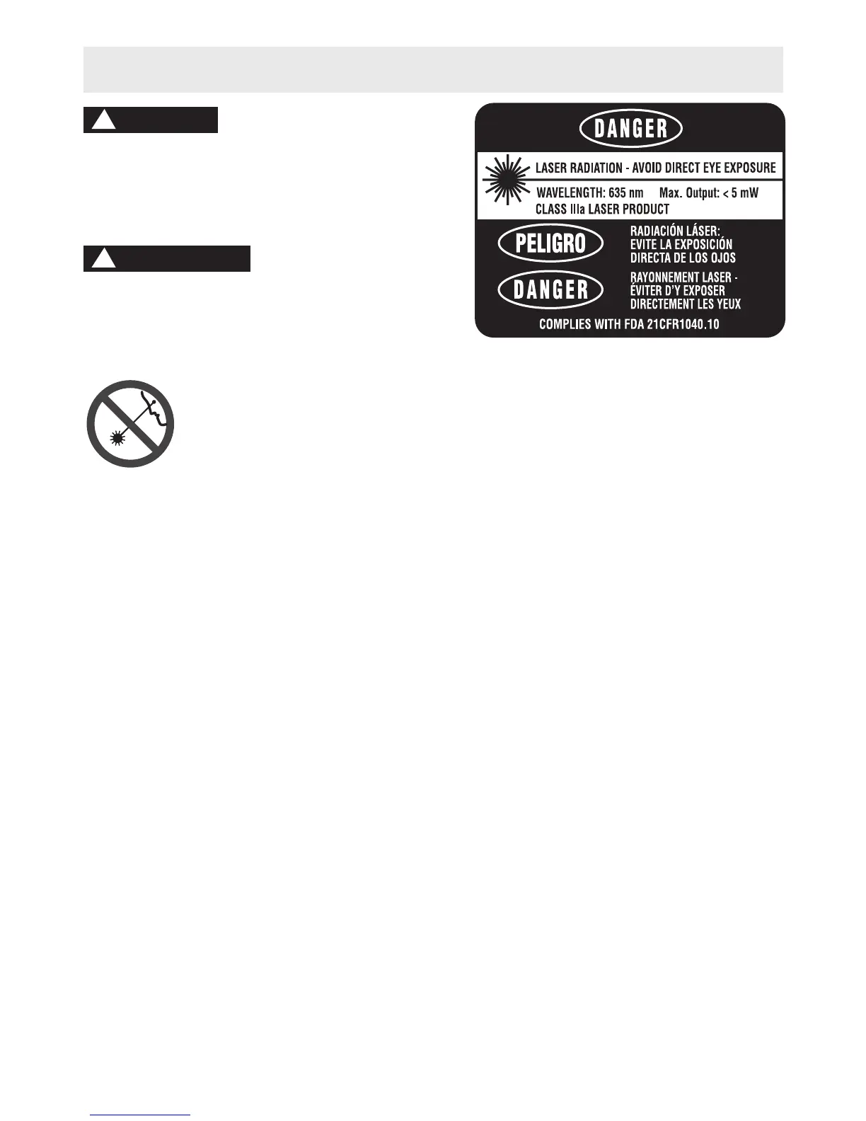 No dirija el rayo láser hacia personas o animales y no mire al rayo láser