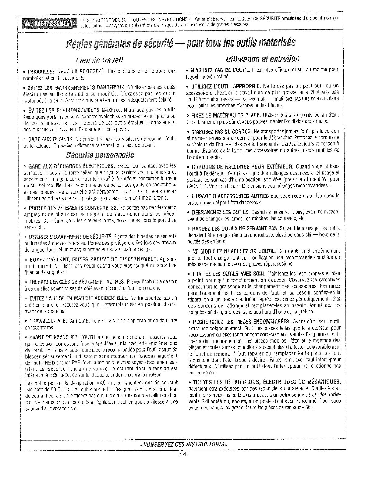 Skil 9105 - Lieu de Travail; Sécurité Personnelle
