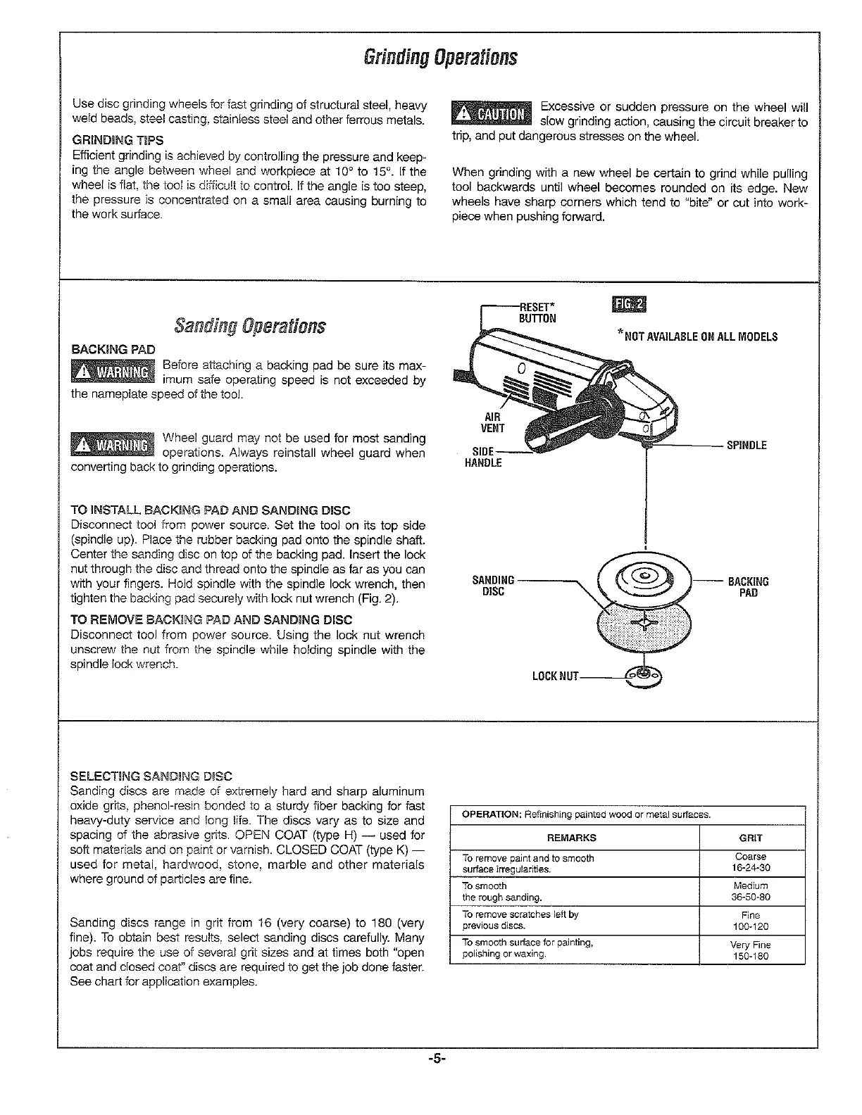 Skil 9310 - Grinding and Sanding Operations; Grinding Tips for Efficiency; Sanding Operations Procedure; Selecting Sanding Discs
