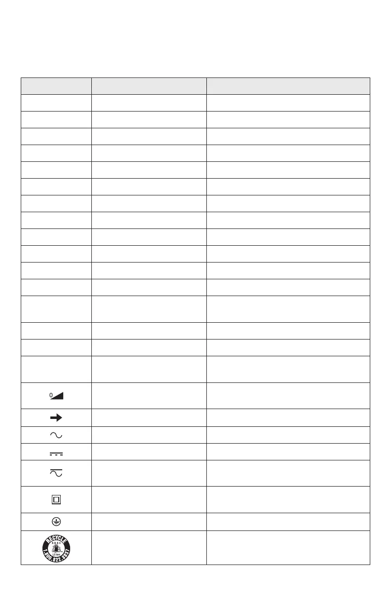 Some of the following symbols may be used on your tool. Please study them