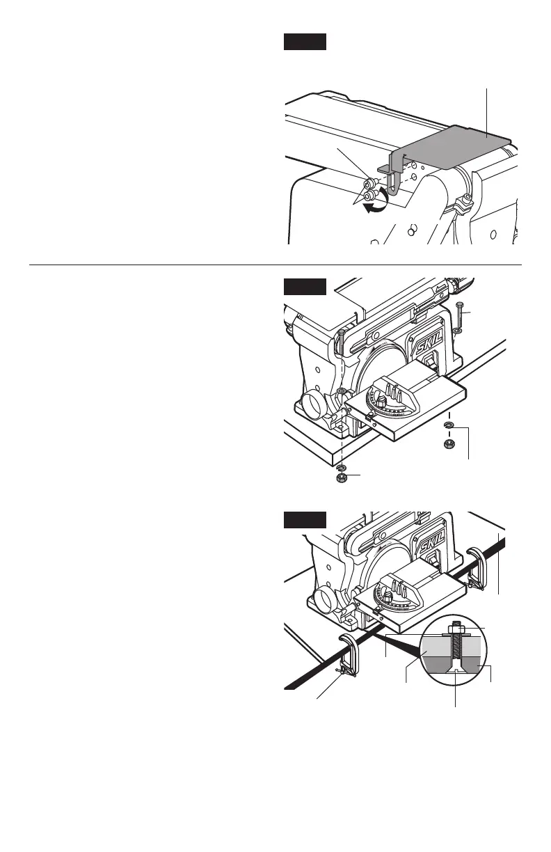 2. Secure the sander to the mounting board using M8 at head screws, lock washers and