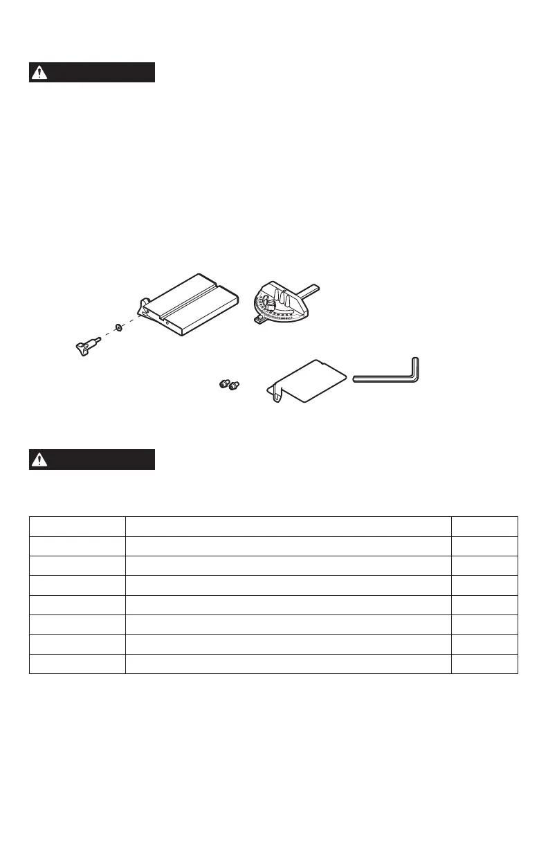 de empaquetamiento y compruebe cada una de ellas con la “Tabla de piezas sueltas” para