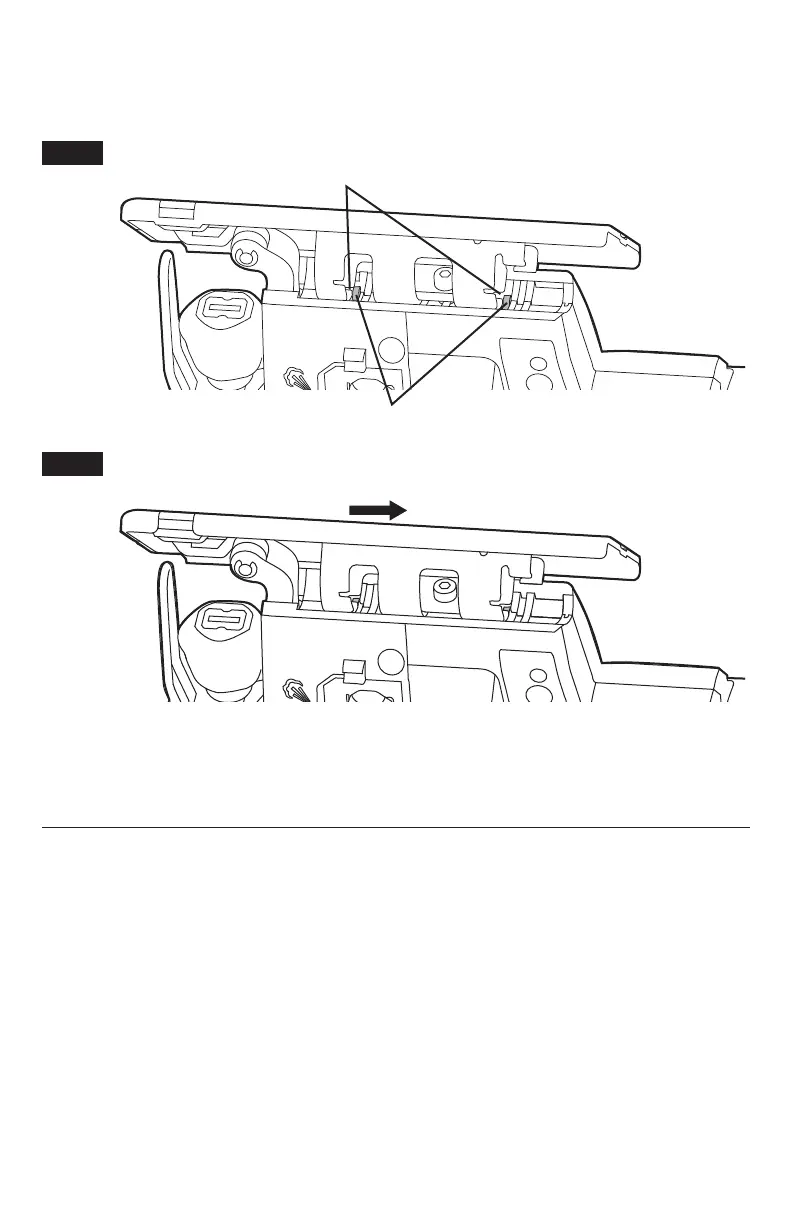 Déplacez le pied légèrement vers l’arrière jusqu’à ce que les goupilles de blocage se trouvent