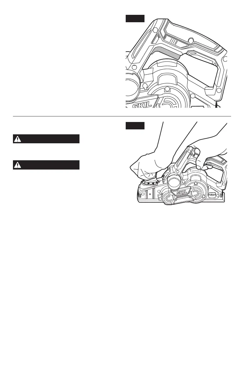 e. Appuyez la base avant de la dégauchisseuse sur la surface de la pièce à travailler en vous