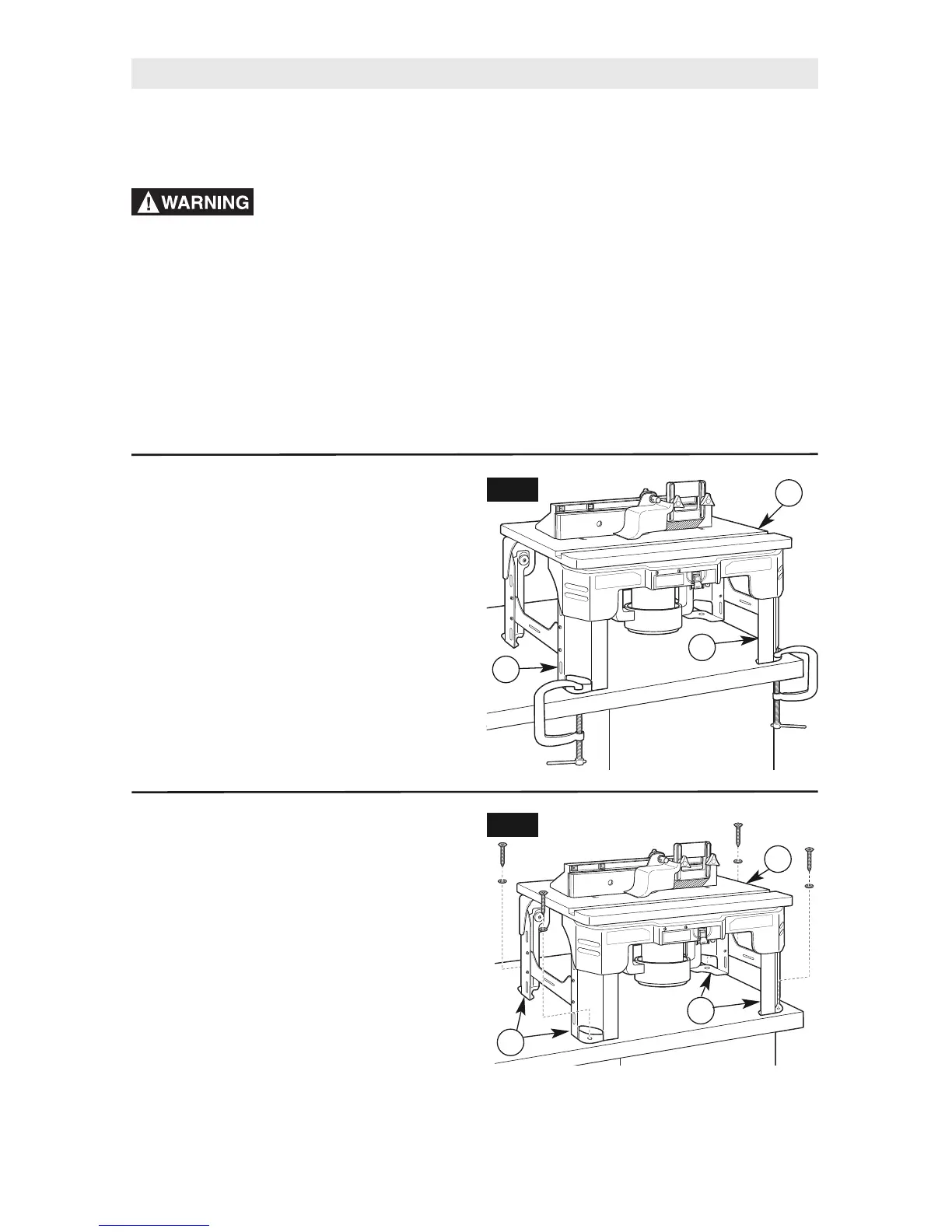 5. Place the router table (A) on the workbench and