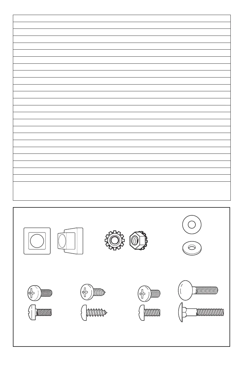 fasteners may not be used in the setup of this model. Refer to the parts list above for the