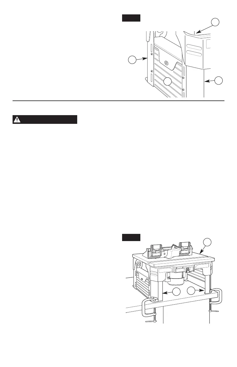 1. Placez la table à toupie (A) sur un établi ou