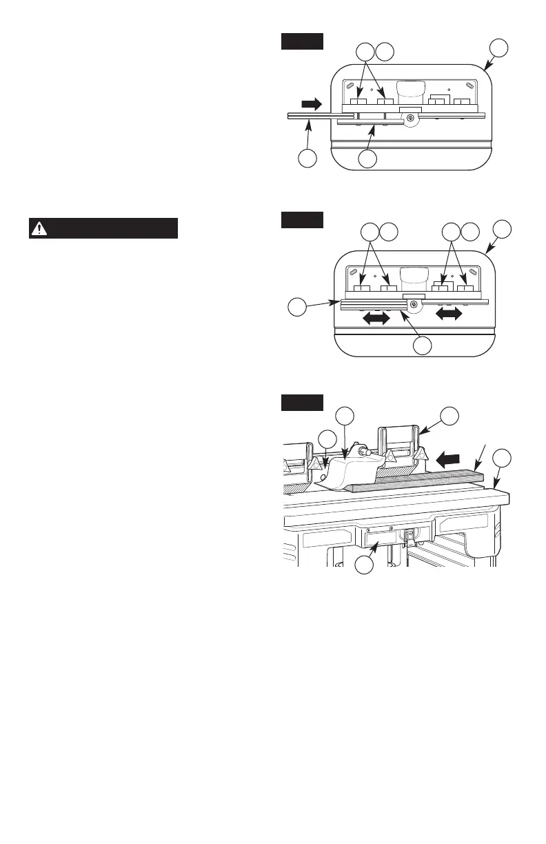 7. Reculez le guide jusqu’à ce que la règle soit alignée avec le bord de coupe de la fraise et