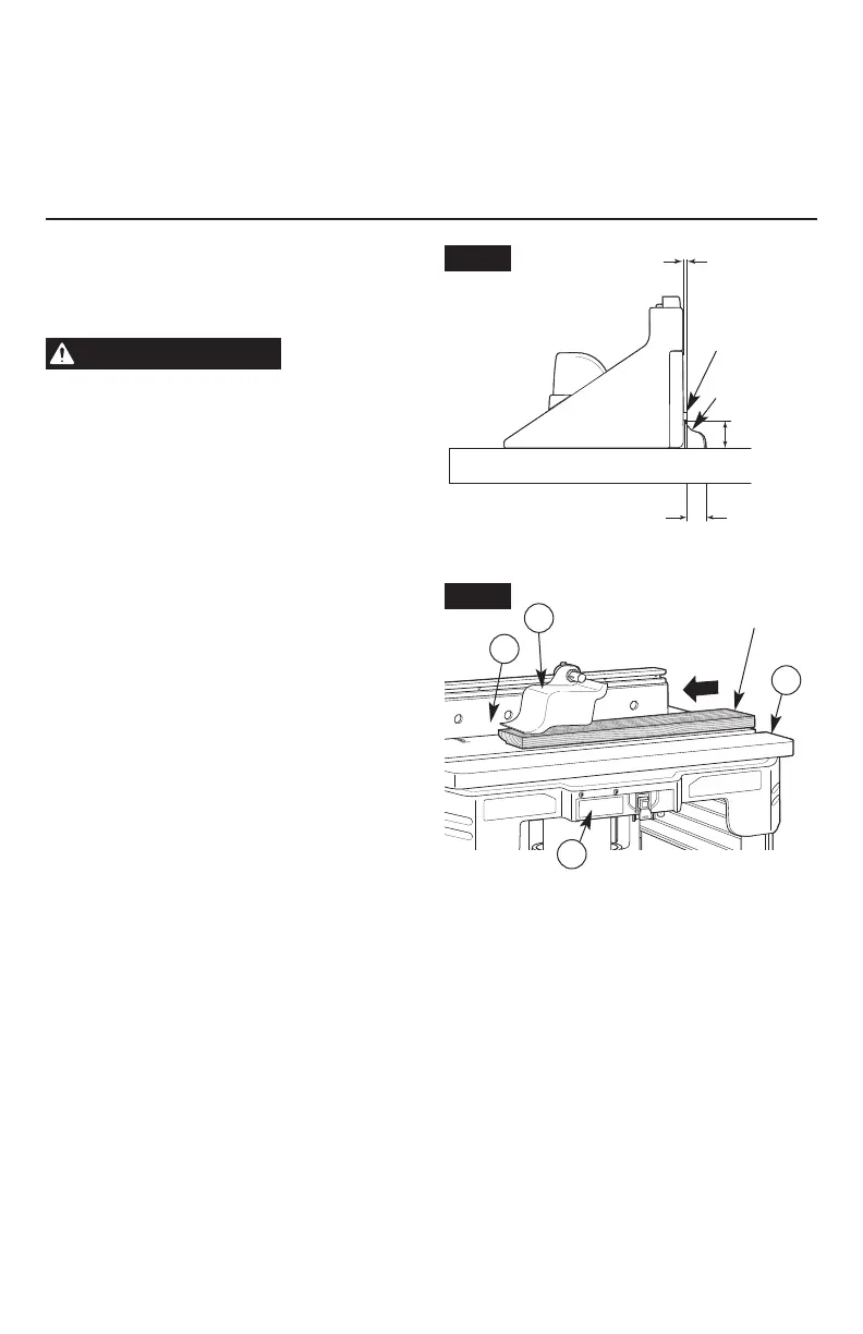8. Tout en tenant fermement une retaille de bois contre le parement du guide (19) en