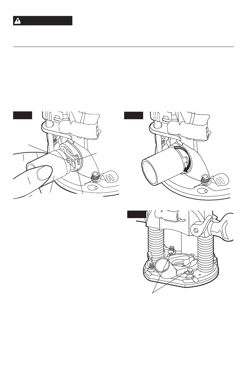 lengüetas en el adaptador con las dos ranuras en el puerto de aspiración y fíjelo girando en