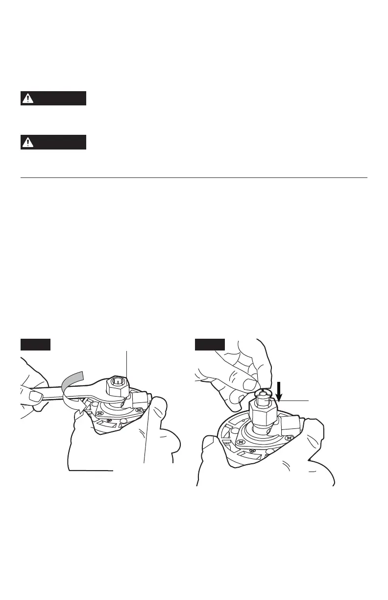2. With the spindle-lock button pressed in to engage the shaft, place the wrench on the 1/2”