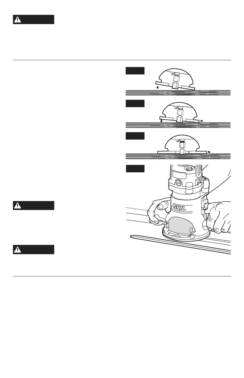 1. With the depth-of-cut set, tilt the router