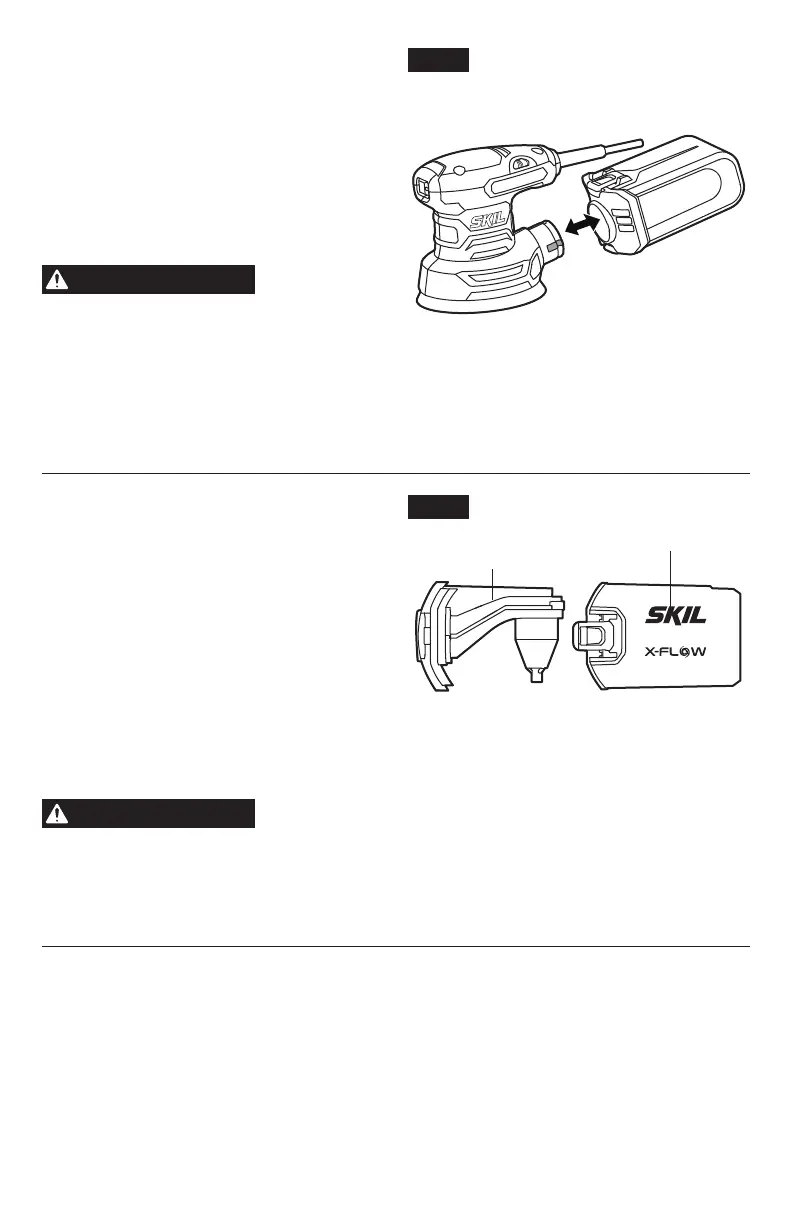 poussière sur la nervure de l’outil, puis insérez le réservoir à poussière dans l’outil jusqu’à ce