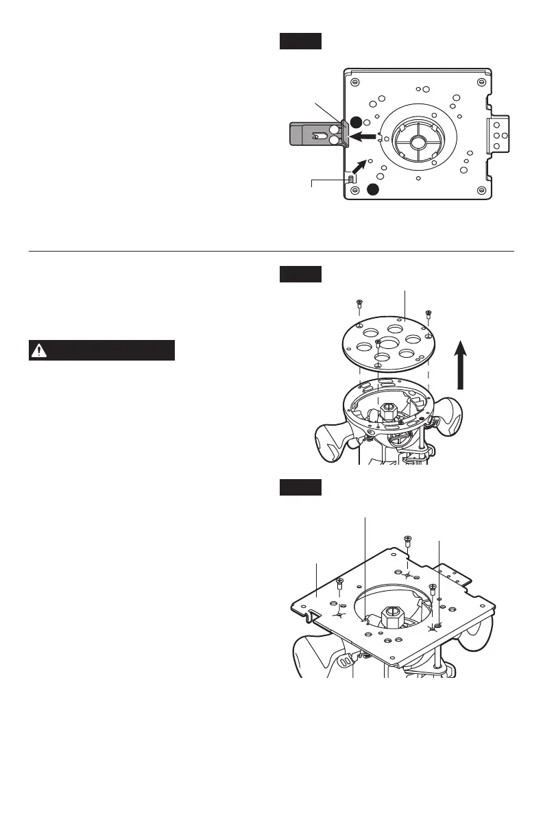4. Alignez les trois trous de la plaque de montage sur les trous de la base de la toupie ;