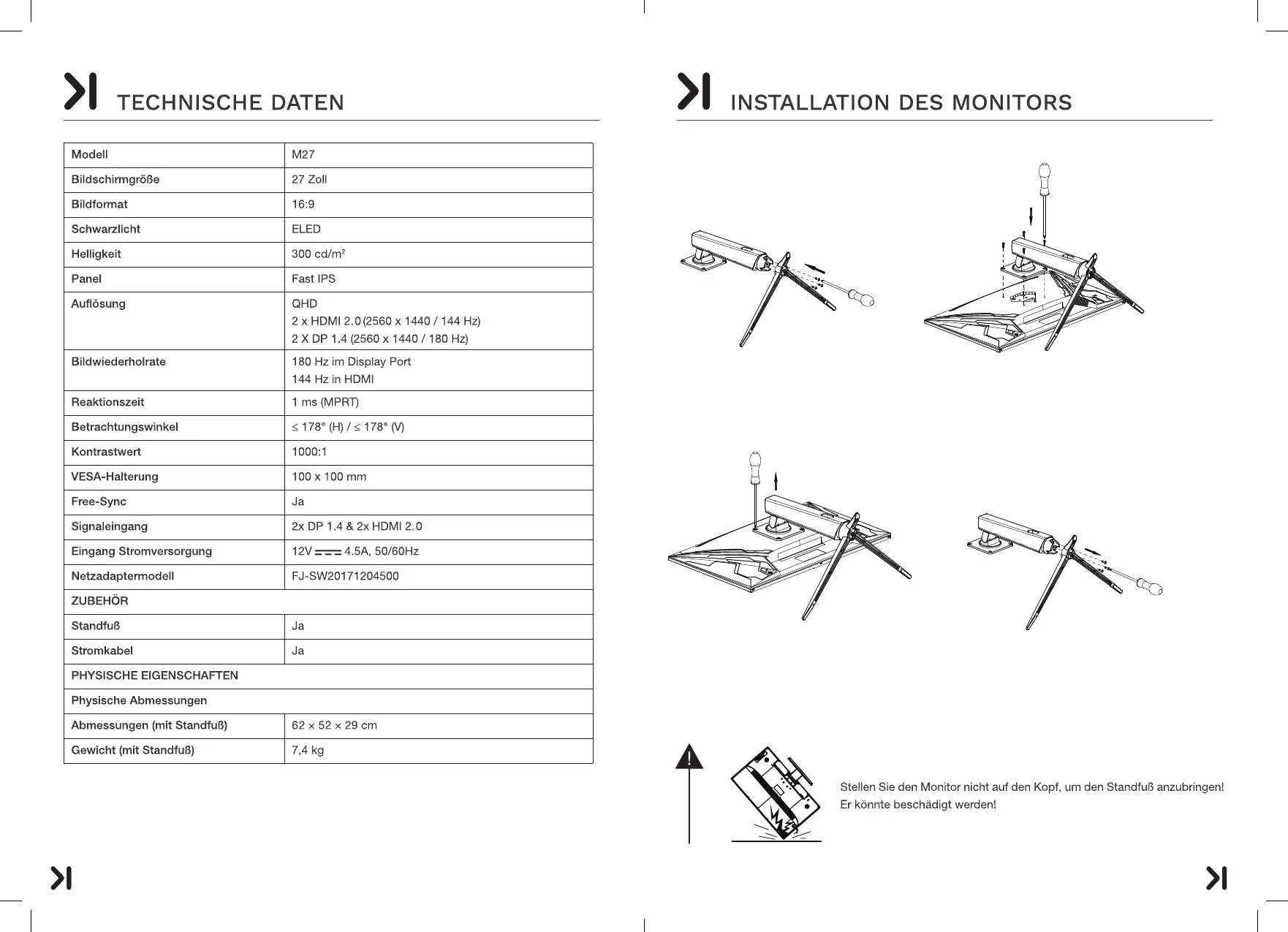 Richten Sie die Befestigungslöcher des Sockels an den VESA-Löchern des Geräts aus und befestigenSie