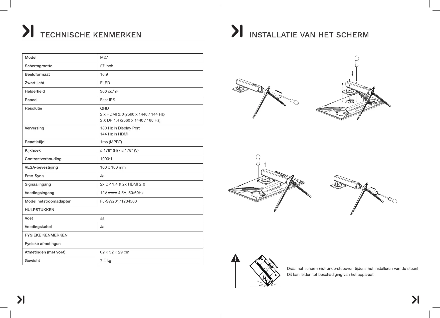 Breng de montagegaten van de voet op één lijn met de VESA-gaten van het apparaat en bevestig 4 M4*16