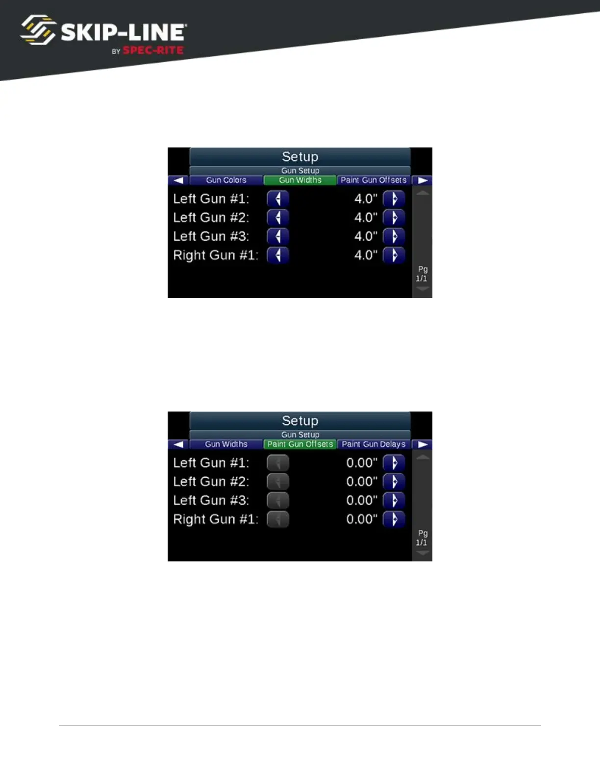 Gun Offsets are the distance from the front-most gun rank to the current gun. The