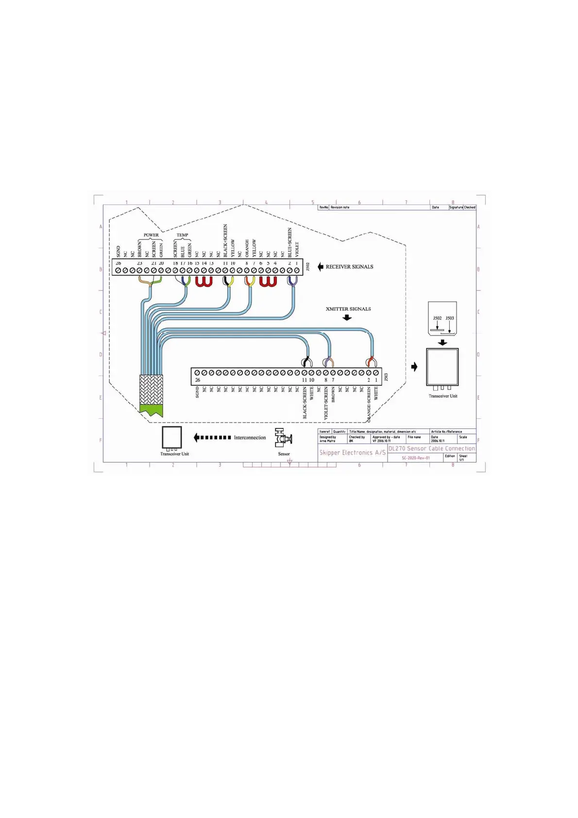 The cable from the transceiver box to the deck unit is connected as per diagram