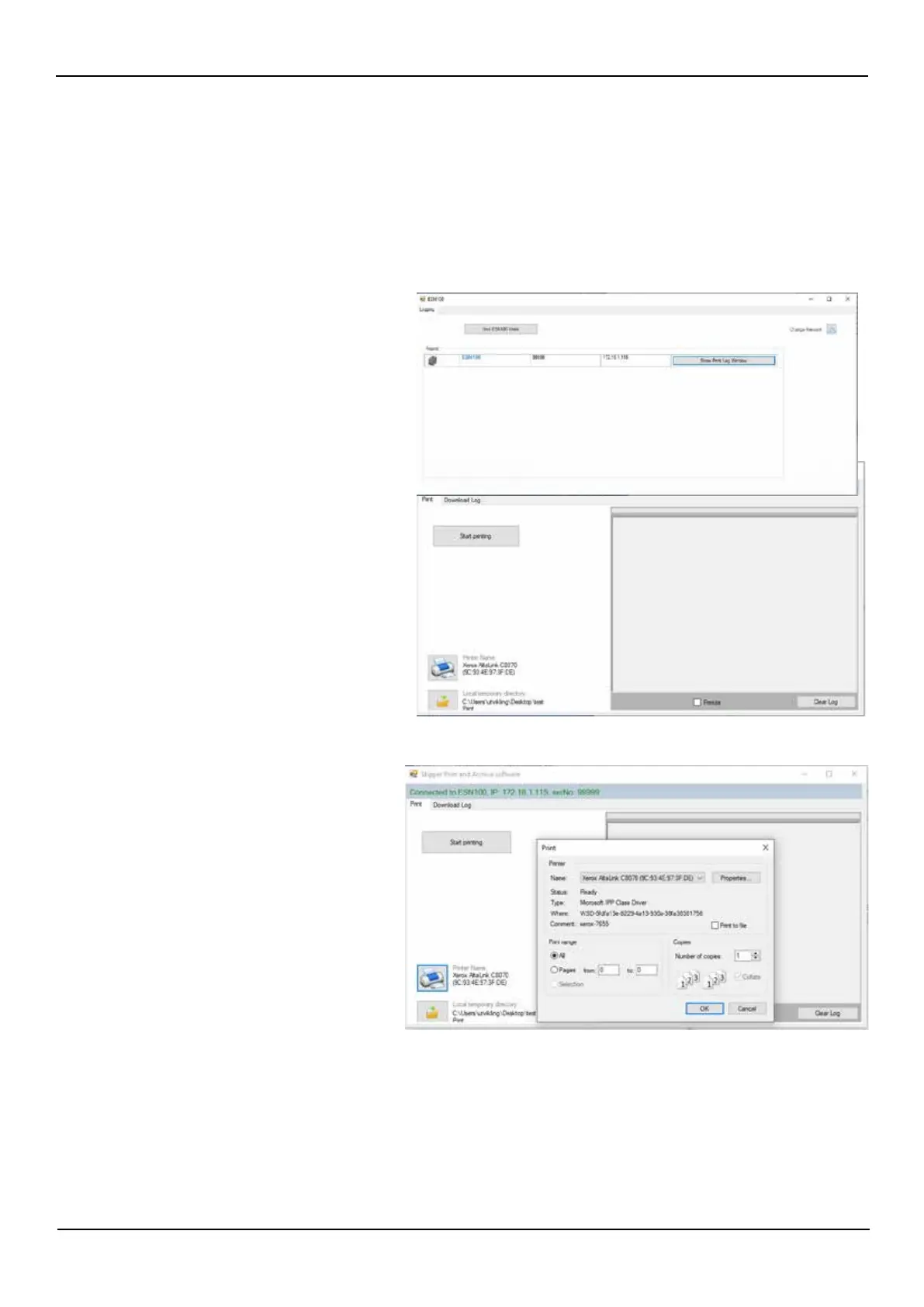 Both the PC connected to printer and the ESN100 has to be set up correctly to be able to print.