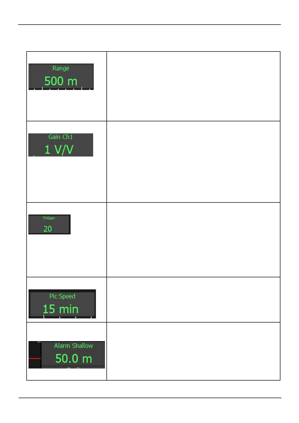 The Shallow water alarm is obligatory, and is indicated on screen by a red