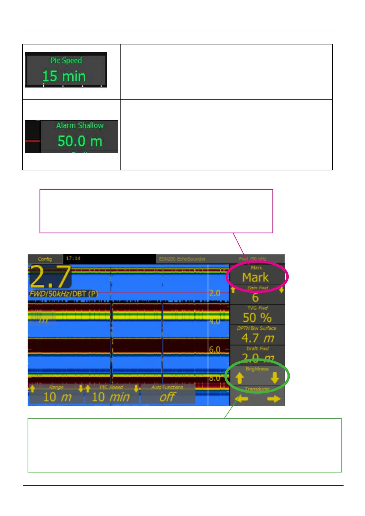 horizontal line. When the depth is shallower than this the alarm will sound.