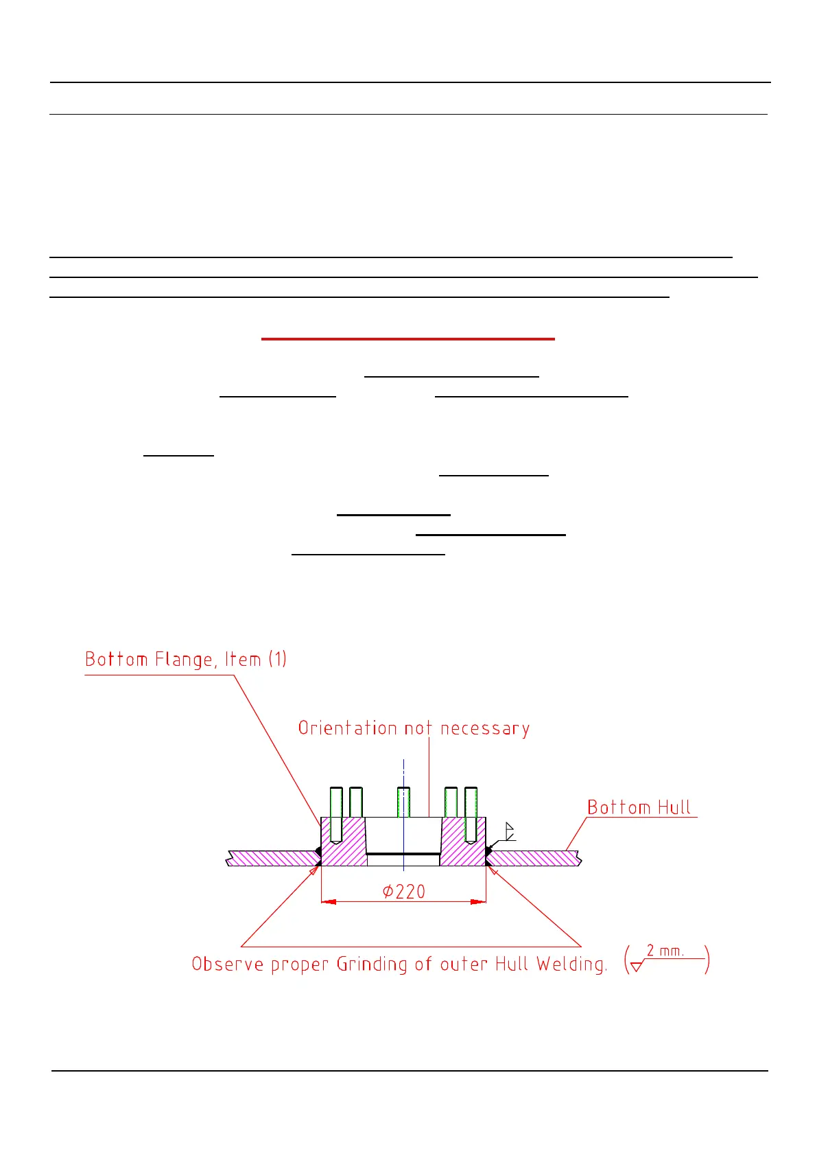 • The bottom ange, Item (1), is welded into the hull. Standard welding practice, methods and procedures