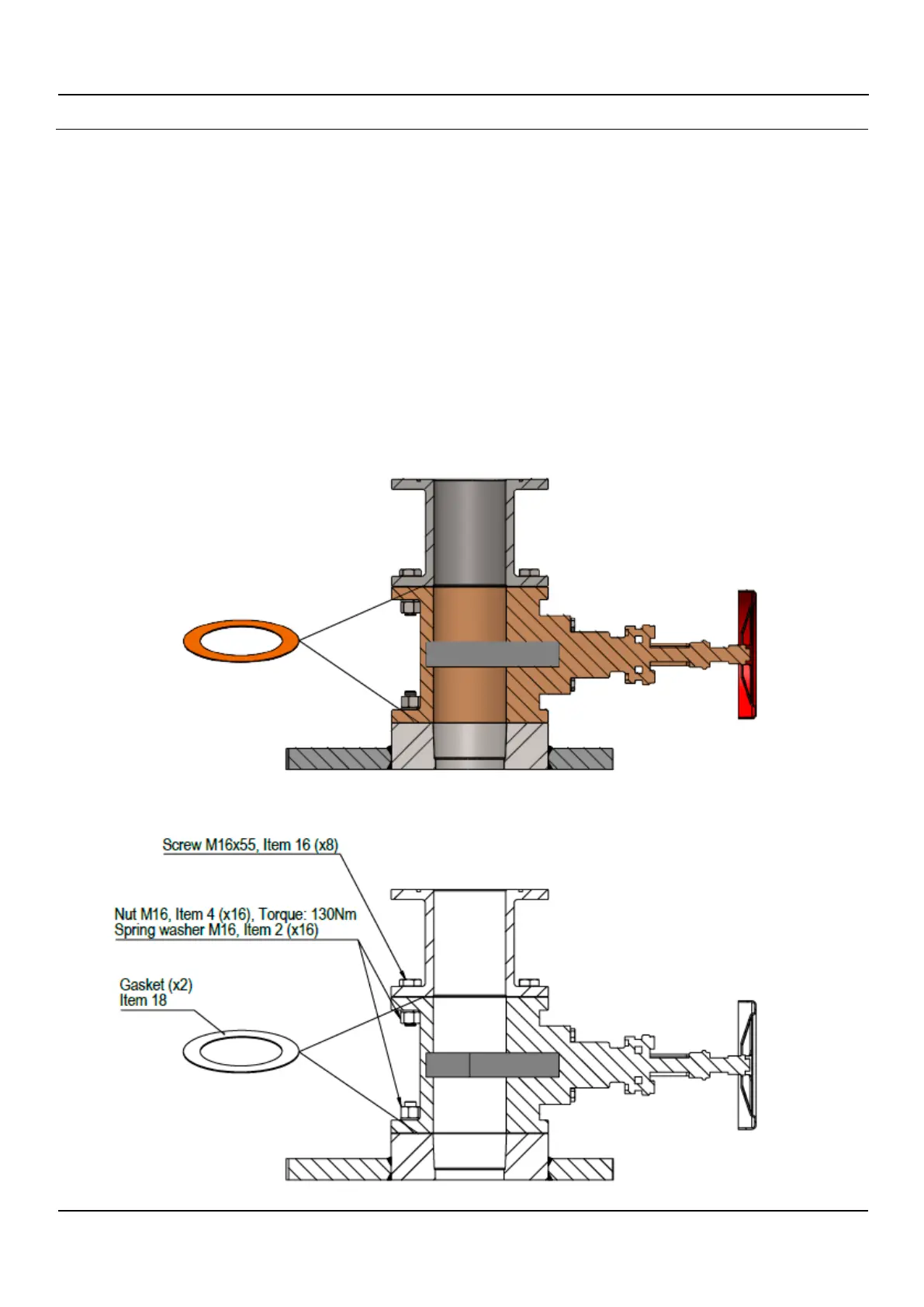 • Place 1.5 mm gasket, Item (18) on top of Bottom Flange, Item (1).