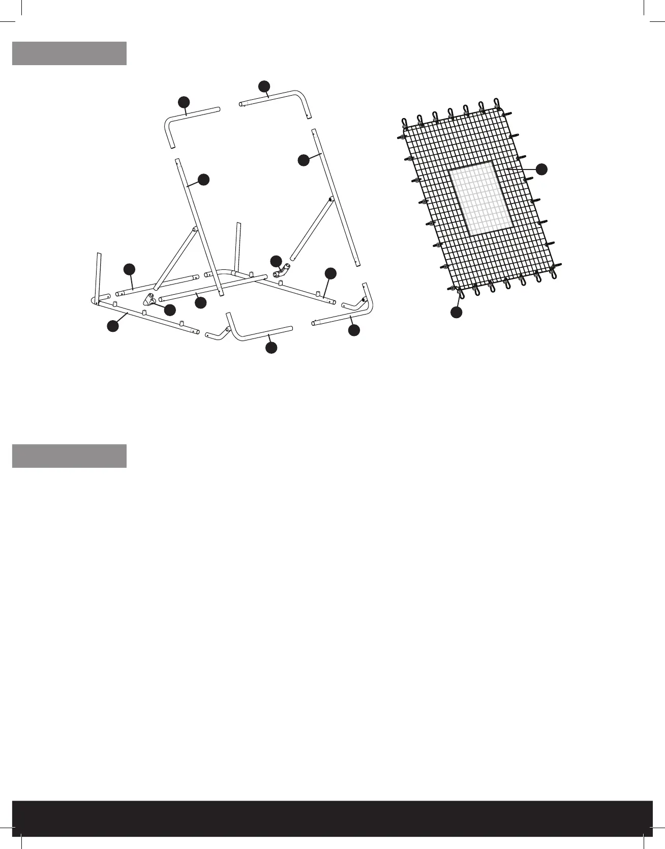 Remove all pieces from the Fielding Trainer box, remove plastic covering and group together as outlined below.