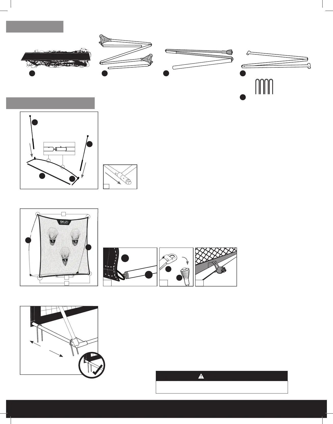 Do not use Ground Stakes on the back of the base frame. Poles will bend and tension system will not function