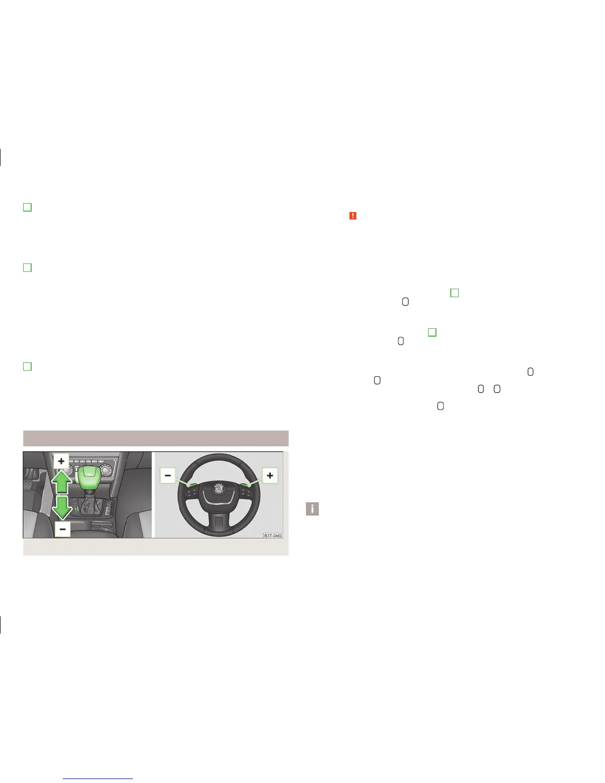 gramme » page 128, Manual shifting of gears (Tiptronic) for a short time in order